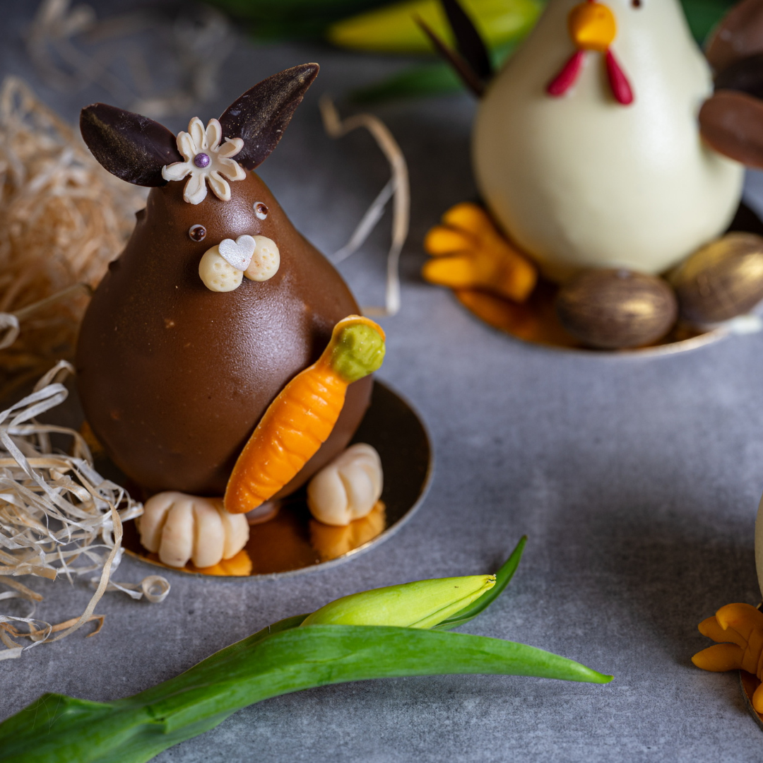 Ozdob pomocí vymodelovaných komponentů z plastické čokolády a přidej čokoládovou dekoraci.